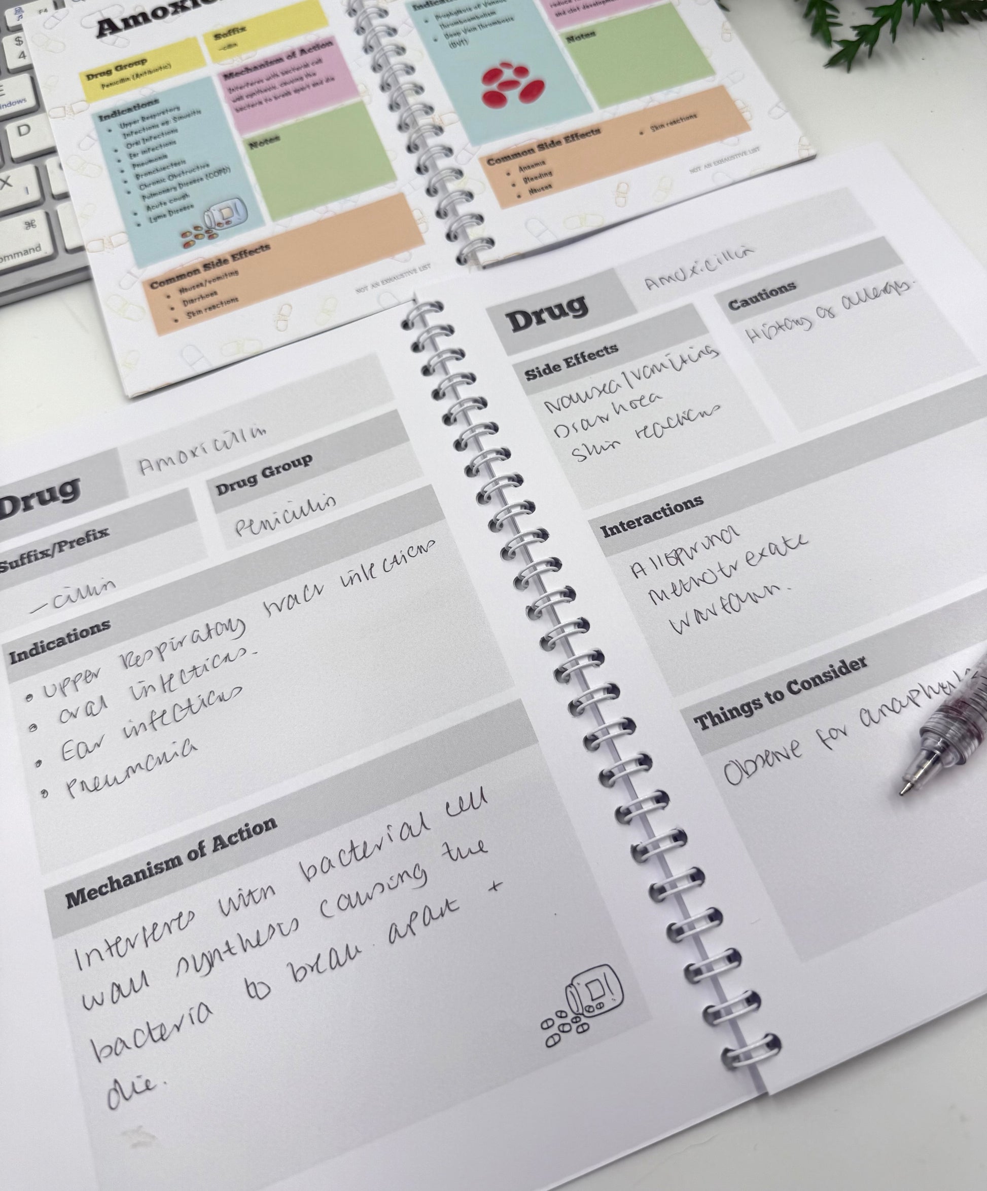 •It can be overwhelming and difficult to learning new medications; and whilst time and practicing medication rounds is key, having a handy book with you is ideal for you to write down any new medication you come across. I always say to students working with me to try to learn 1-2 a week don’t overwhelm yourself - but it’s entirely up to you :)