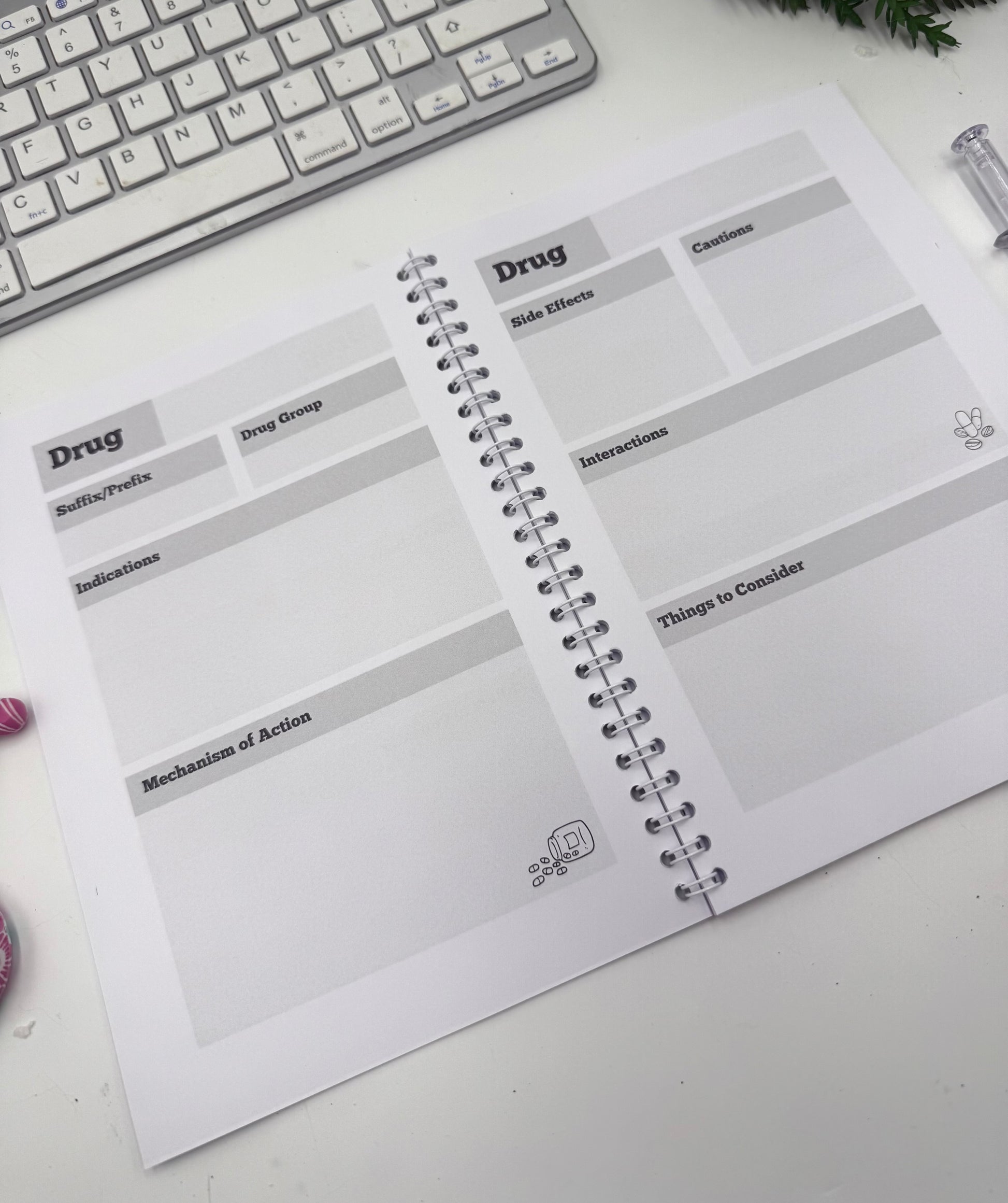 •You can write the drugs as you come across them, the book has blank sections so you can break down the drug in more detail to help develop your understanding. Ideal for students or newly qualified.