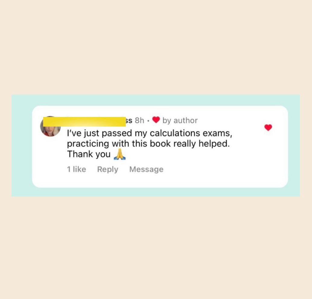 This book has multiple 5 star reviews and has even helped people pass their calculations exams!Ā