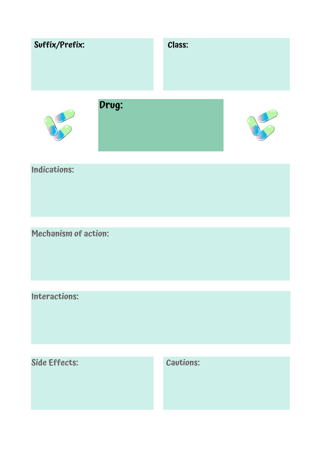 - Medication Revision Template for you to print off and use as many times as you wish.